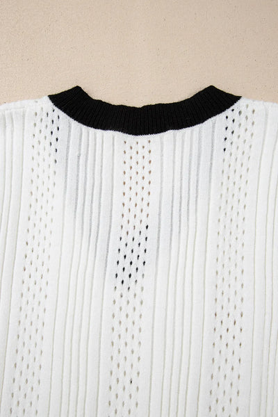 Contrast Trim Eyelet Knit V Neck Sweater Vest