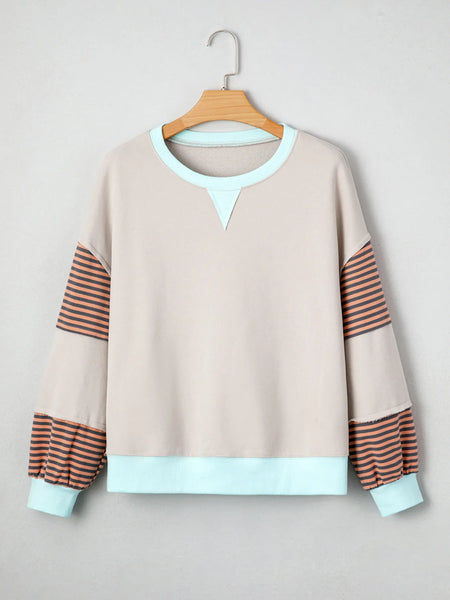 Striped Colorblock Patchwork Drop Shoulder Sweatshirt