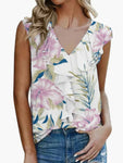Lime 'N' Chili Full Size Graphic Print Ruffle Trim Mock Neck Sleeveless Top
