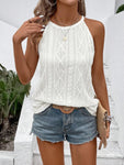 Zenana Woven Drawstring Tie Side Sleeveless Top