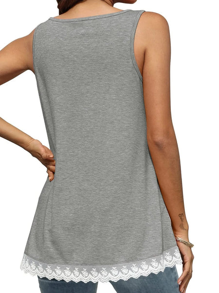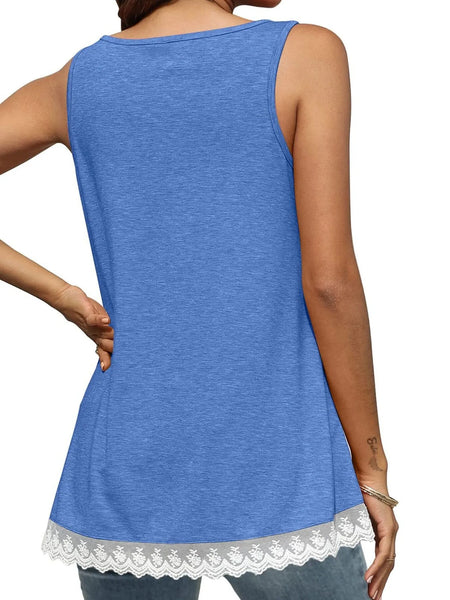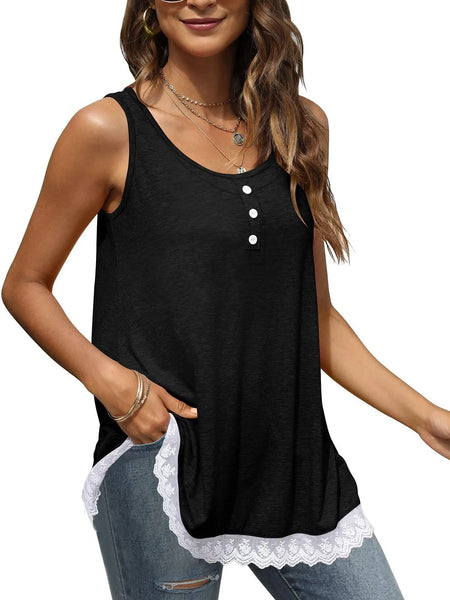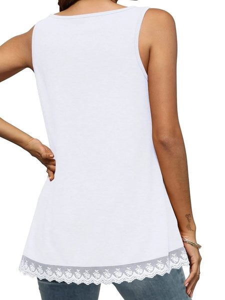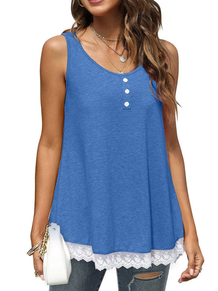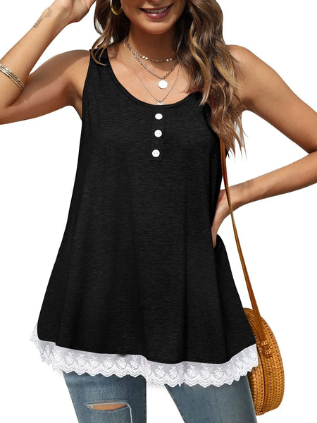 This fashion tank top features a beautiful coral pink shade with romantic white lace trim detailing. Made from a soft, lightweight fabric blend perfect for warm weather wear. The relaxed fit and A-line silhouette provide comfortable coverage while the decorative button front and wide straps add stylish details. The scoop neckline and lace-trimmed hem create a feminine look that pairs easily with jeans, shorts or skirts. An essential casual piece that combines comfort with charming details.