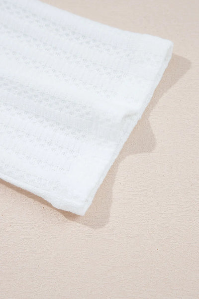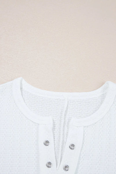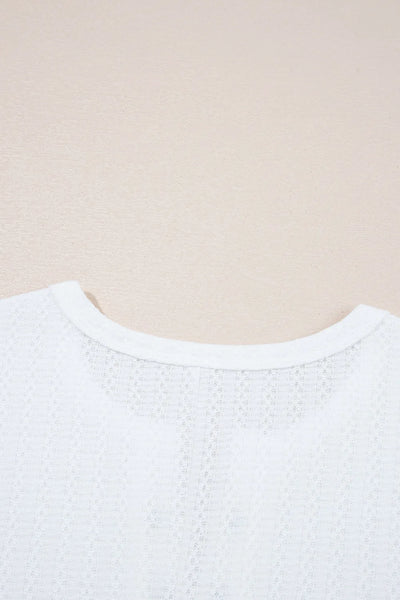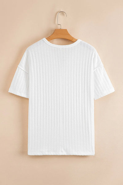 Textured Hollow Grommet Placket Split Neck Short Sleeve Top