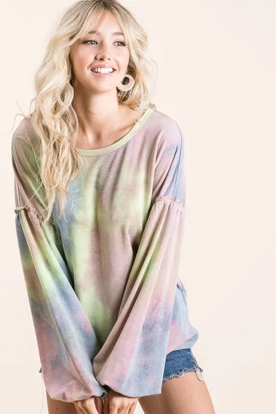 BiBi Tie Dye French Terry Sweatshirt With Bubble Sleeves