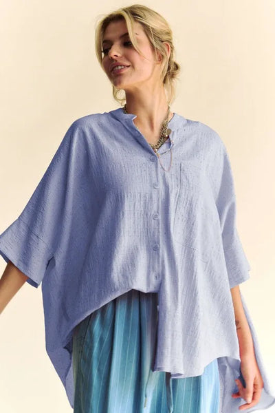 • Features: Oversized, Buttoned, Pocketed, High-Low