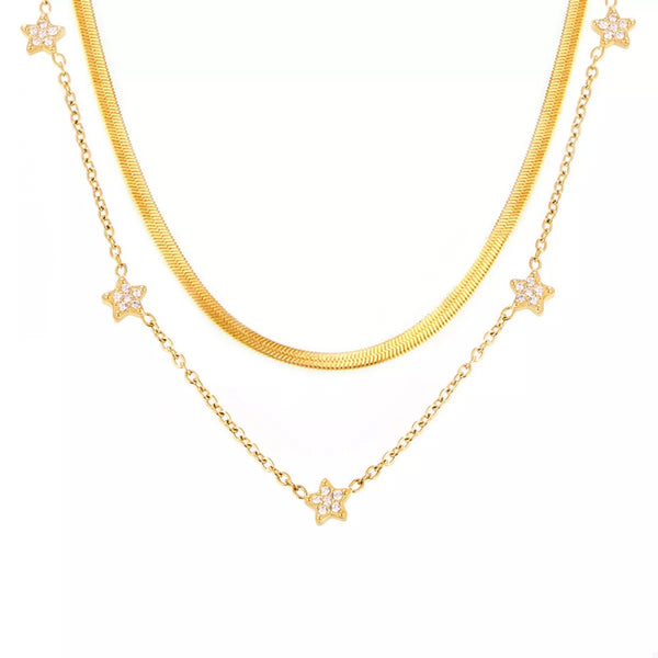 2-Piece 18K Gold-Plated Necklace with Zircon Accents