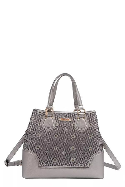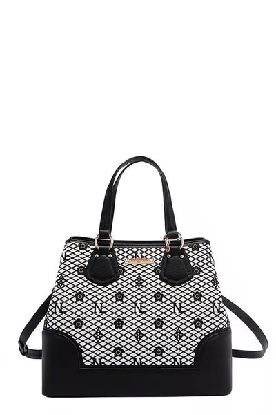 Nicole Lee USA Monogram Pattern Handbag with Rhinestones Decor