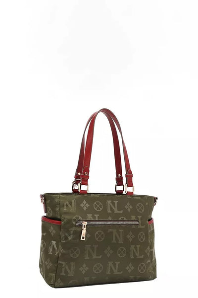 - Lightweight, polyester exterior with vegan leather accents