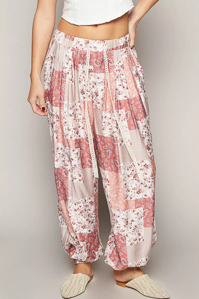 These stunning bohemian palazzo pants feature a beautiful vintage-inspired floral print in soft pink and coral tones. Made from lightweight, breathable fabric perfect for warm weather comfort. The wide leg silhouette creates an effortlessly elegant look while the elastic waistband ensures all-day comfort. The flowing design makes these pants ideal for casual outings, beach vacations, or bohemian-inspired styling. The versatile floral pattern pairs beautifully with solid tops and the relaxed fit flatters all body types.