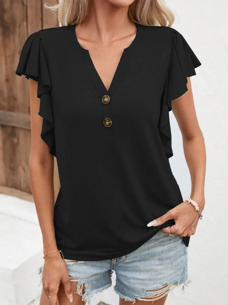 Full Size Ruffled Notched Cap Sleeve Blouse