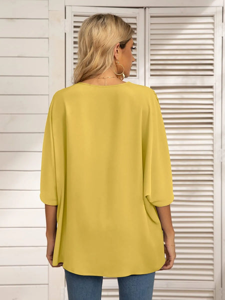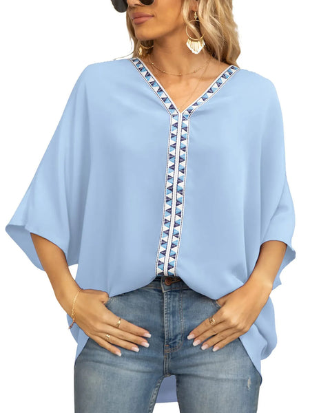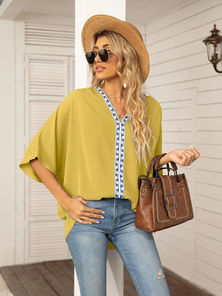 Oversized Contrast V-Neck Half Sleeve Blouse