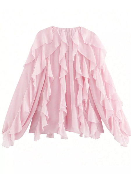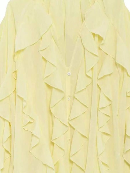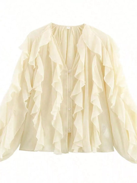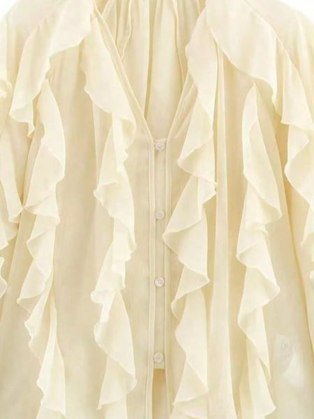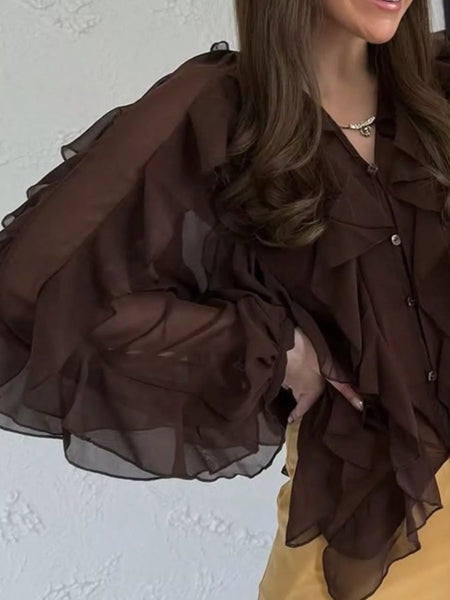 • Features:Buttoned,Sheer,Ruffled,Layered