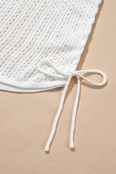 Hollow Out Bell Sleeve Drawstring Knit Cover Up Dress