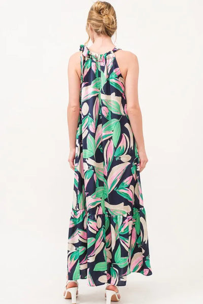 And The Why Botanical Printed Halterneck Tiered Maxi Dress