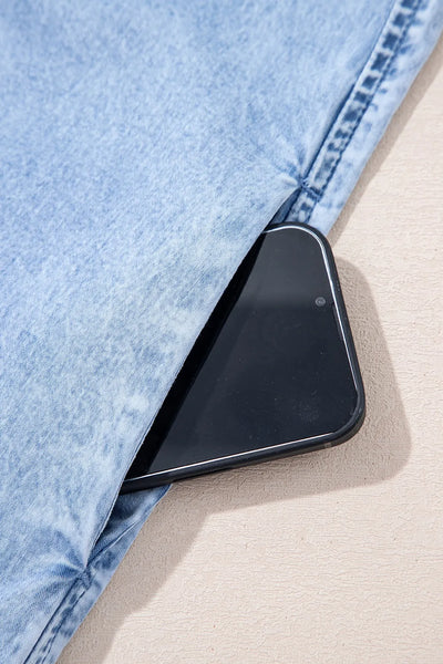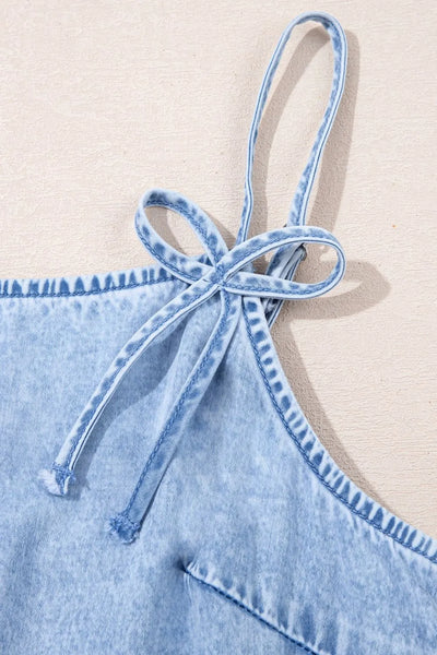 Bow Detail Spaghetti Straps Ruffle Hem Denim Dress