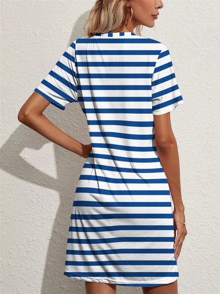 Contrast Striped Round Neck Short Sleeve Dress
