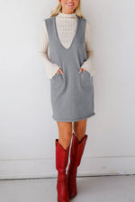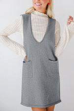 Lovelet Pocketed V-Neck Mini Sweater Overall Dress