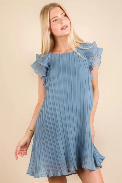 VERY J Plus Size Ruffle Sleeve Pleated Woven Mini Dress
