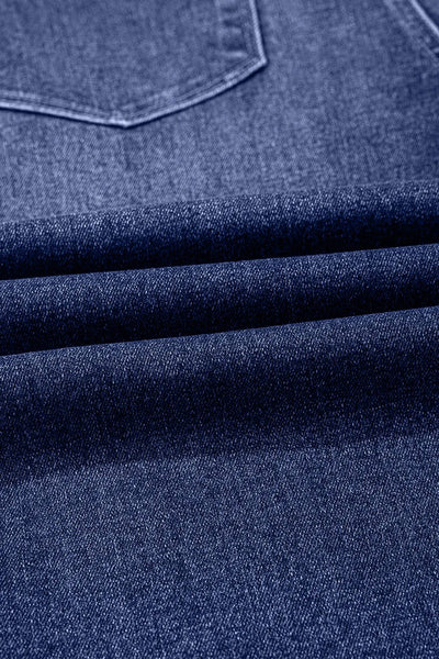 Folded Cuffs Distressed Straight High Waist Jeans