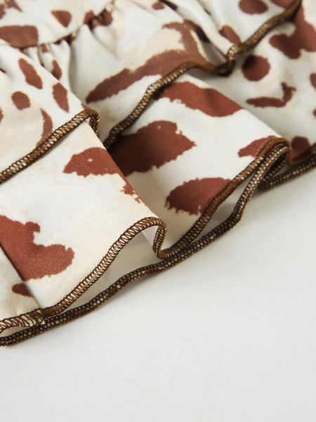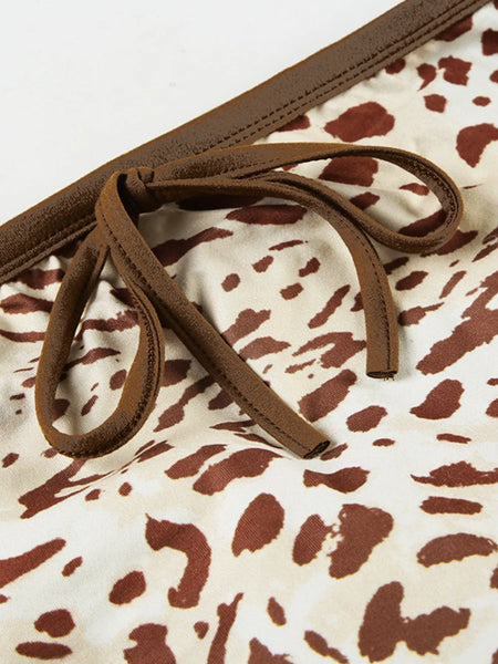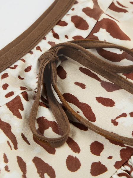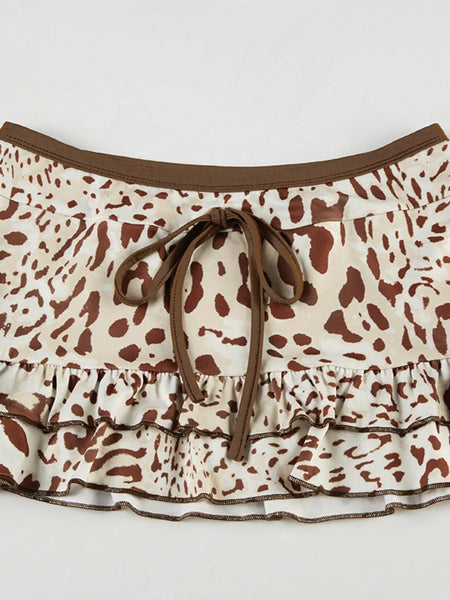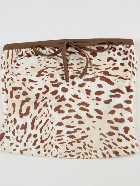 Leopard Print Strapless Top and Skirt Two-Piece Set