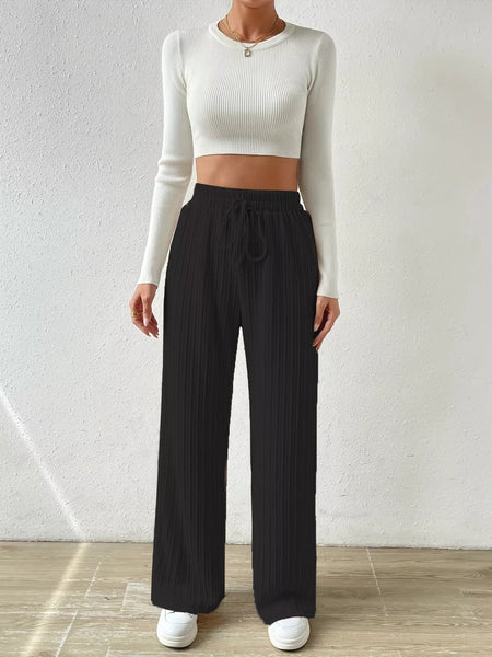 These relaxed, drawstring pants offer a perfect balance of comfort and contemporary flair, making them a must-have for any casual yet chic outfit.