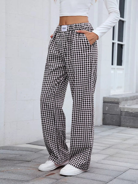 Plaid Wide Leg Casual Pants
