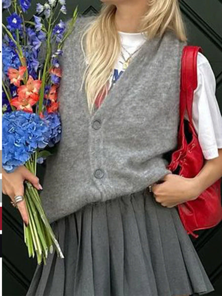 Button-Front Sweater Vest
