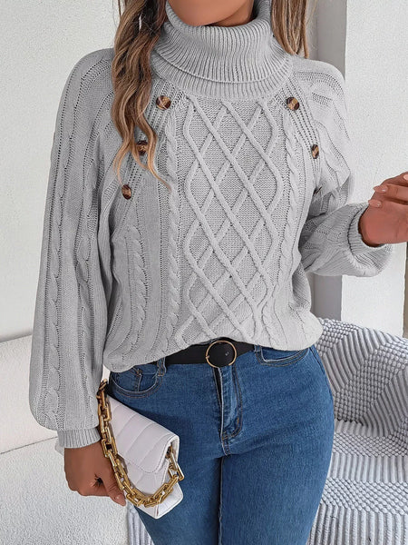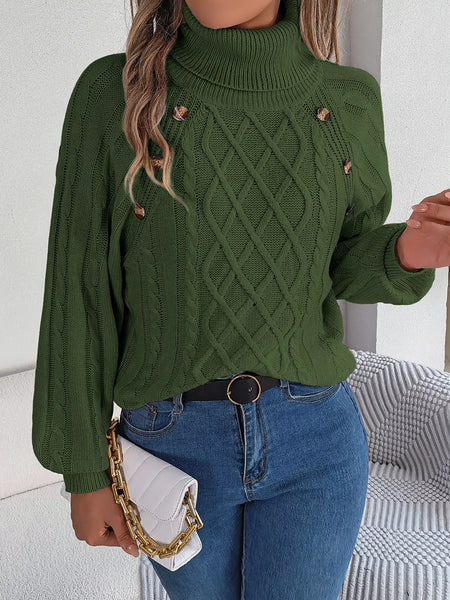 Cable Knit Turtleneck Long Sleeve Sweater