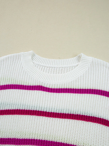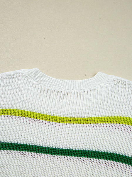 Colorful Striped Drop Shoulder Crew Neck Sweater