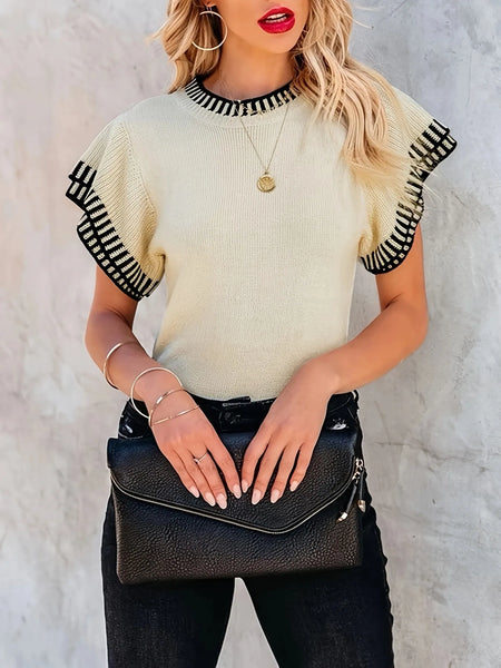 Contrast Trim Cap Sleeve Sweater