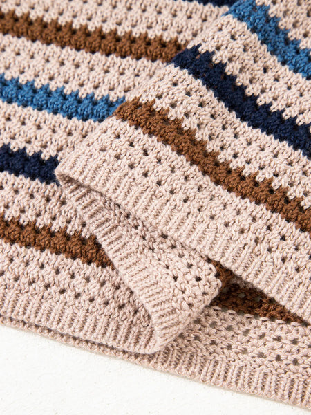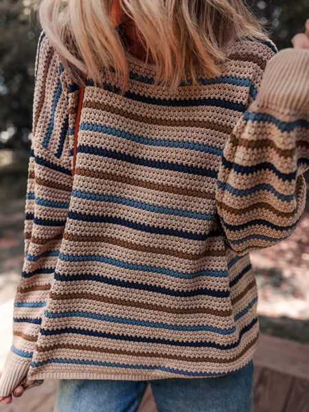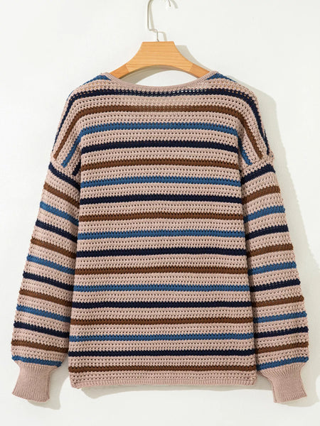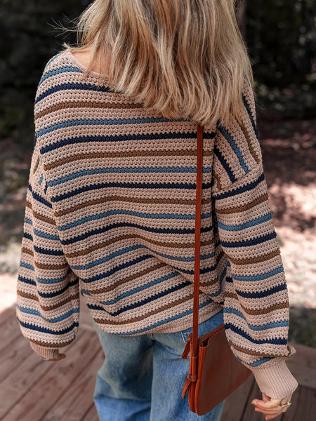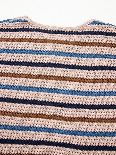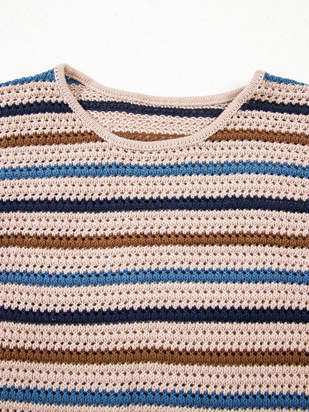 Multicolour Striped Knitted Drop Shoulder Round Neck Sweater