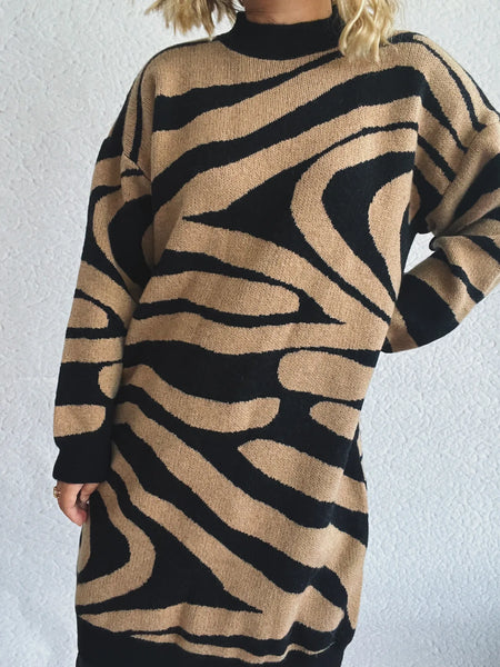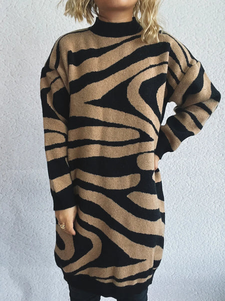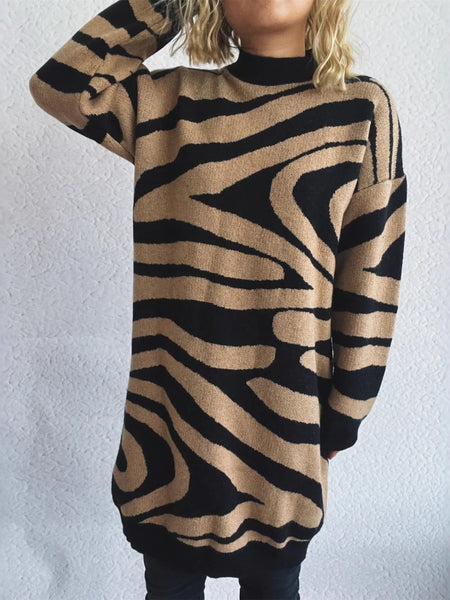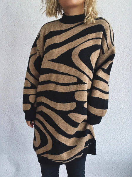 Oversized Zebra Print Long Sleeve Sweater