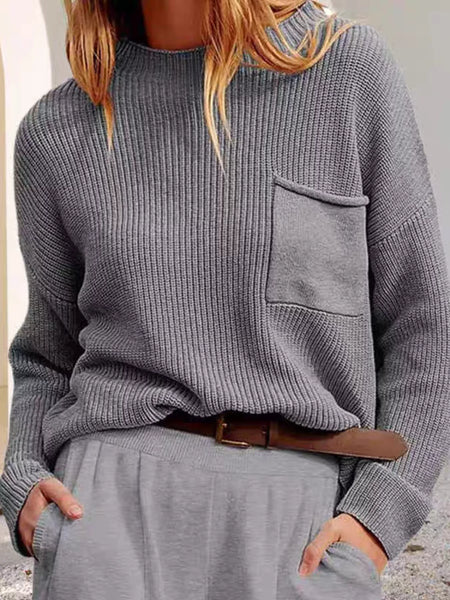 Pocket Detail Dropped Shoulder Sweater