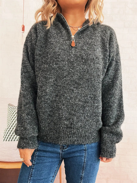 Quarter Zip Ribbed Hem Sweater