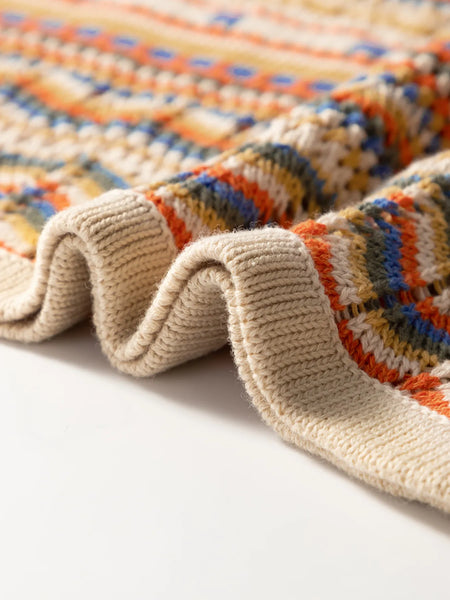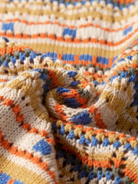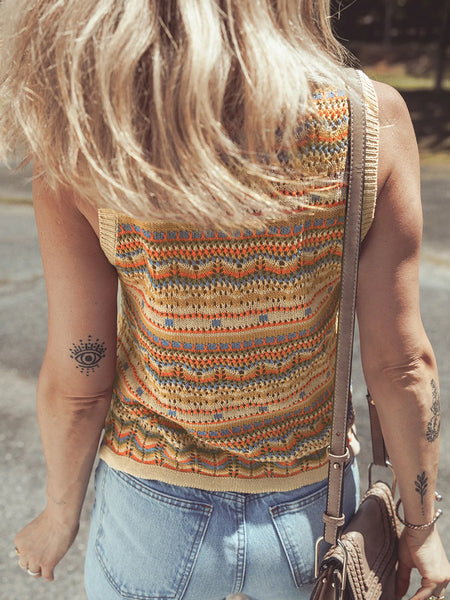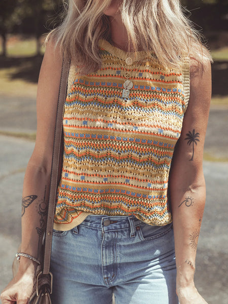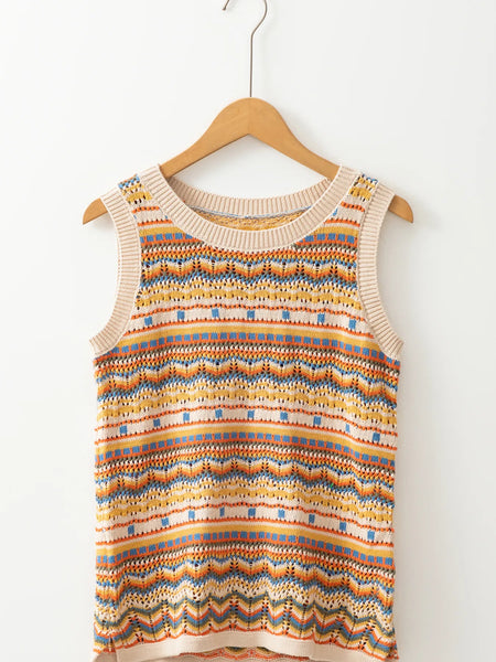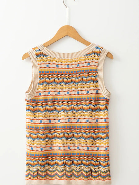 Stripe Eyelet Crochet Round Neck Sweater Vest