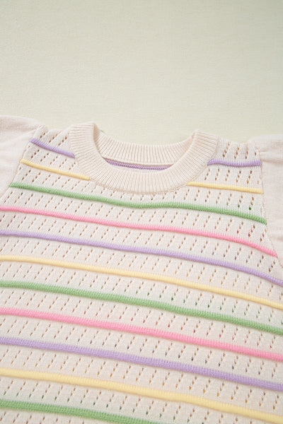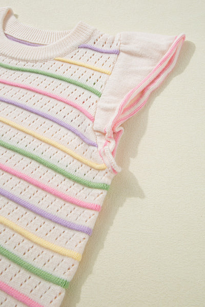Striped Eyelet Ruffled Sleeve Sweater Sweater Vest