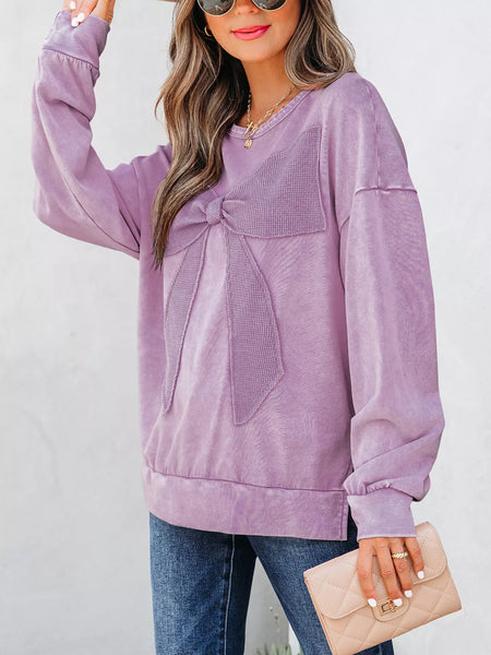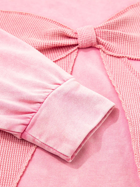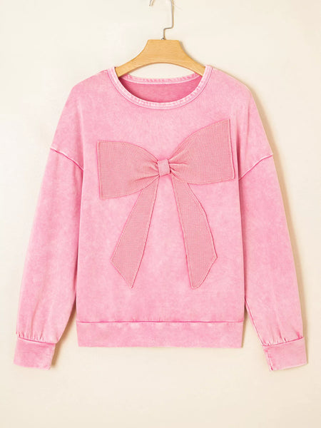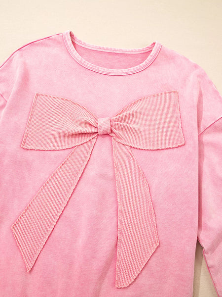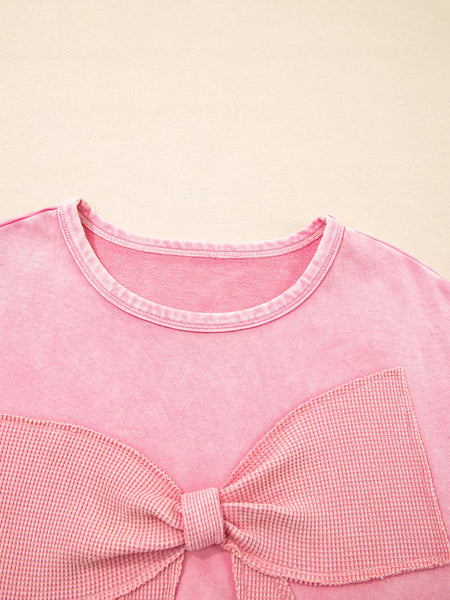 Mineral Wash Bow Patchwork Sweatshirt