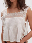 BiBi Washed Cotton Gauze Woven Tie Ribbon Detailed Top