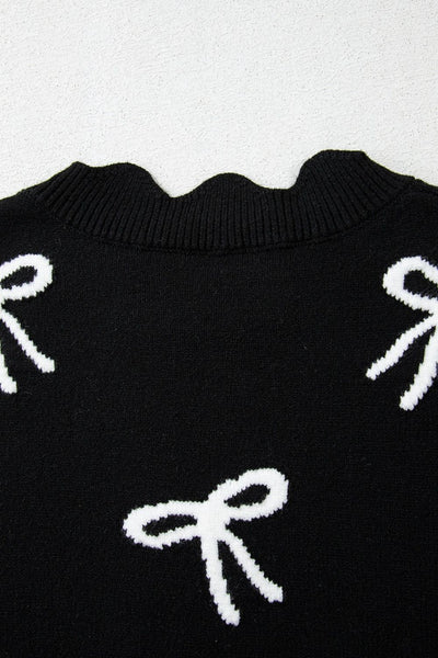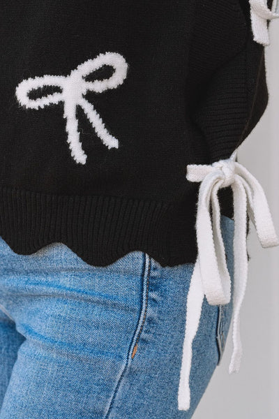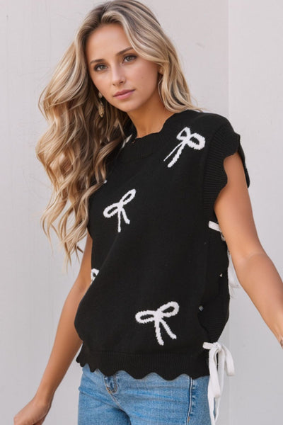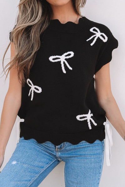 Bow Side Ties Scalloped Hem Cap Sleeve Sweater