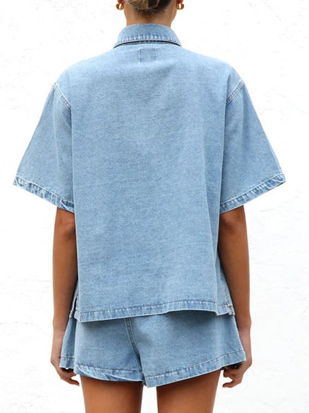 Button Up Half Sleeve Denim Shirt