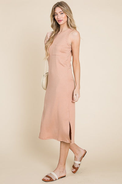 BOMBOM Ribbed Knit Sleeveless Midi Dress