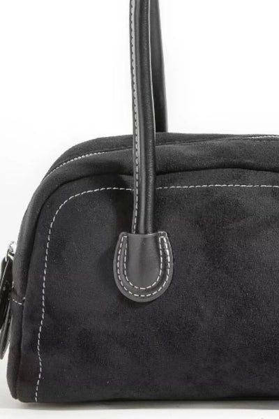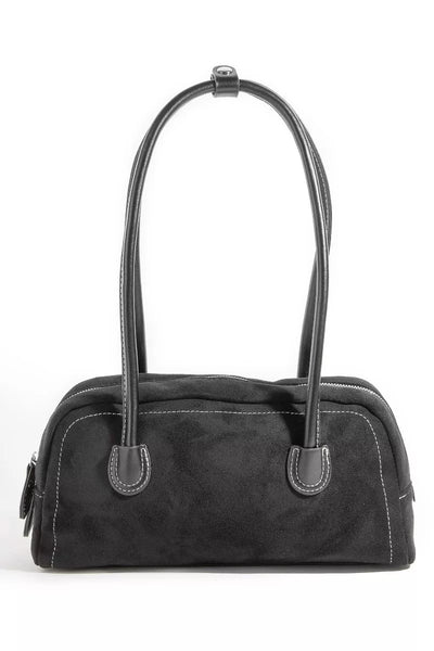 The Faux Suede Baguette Hand Bag is a chic and stylish accessory to elevate any outfit. Crafted from faux suede material, this bag offers a luxurious feel without harming animals. The baguette-style design adds a trendy touch, perfect for both casual and dressy occasions. With its compact size and top handle, this handbag is practical and easy to carry. Complete your look with the Faux Suede Baguette Hand Bag for a touch of sophistication and fashion-forward flair.