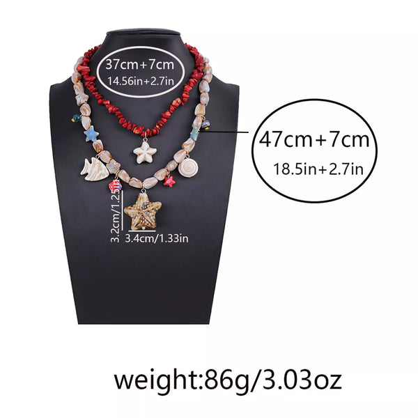 Boho Layered Multi-Strand Beach Shell Charm Necklace