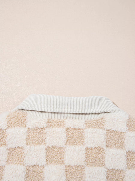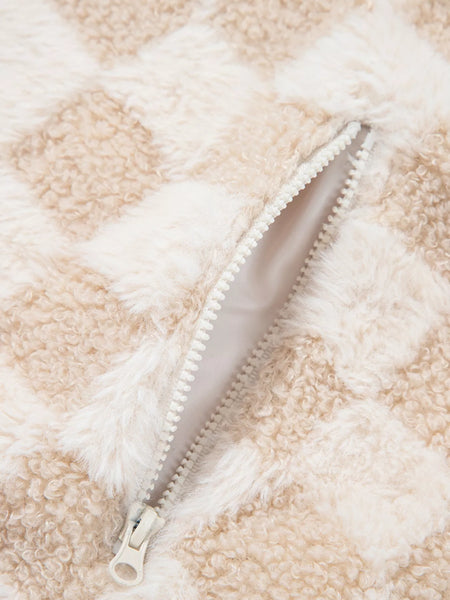 Checker Sherpa Corduroy Patchwork Zip Up Jacket