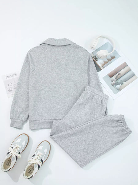 Zip Collar Long Sleeve Top and Drawstring Pants Set