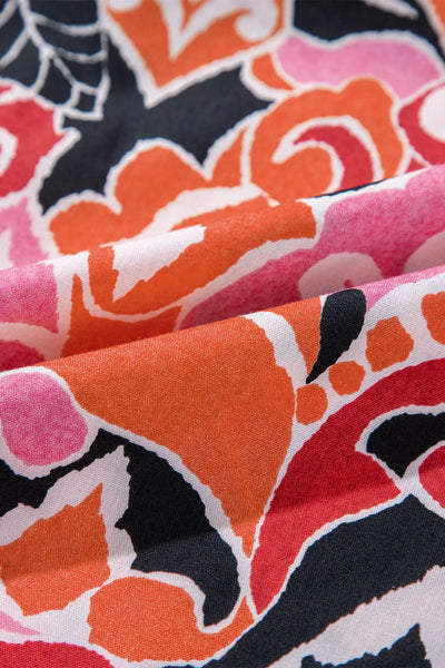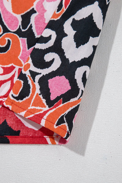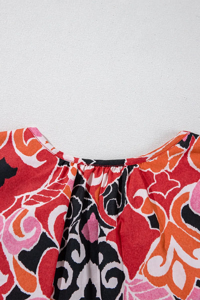 Ethnic Print Split Neck Short Puff Sleeve Blouse