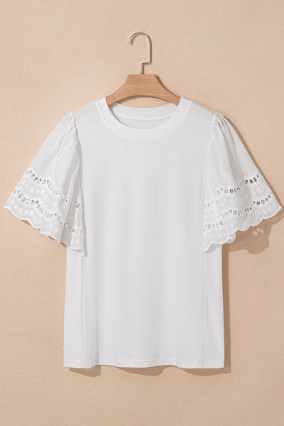Hollow Out Embroidered Short Sleeve Round Neck Top
