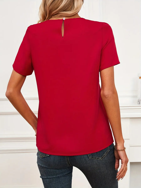 Lace Mesh Panel Short Sleeve Blouse