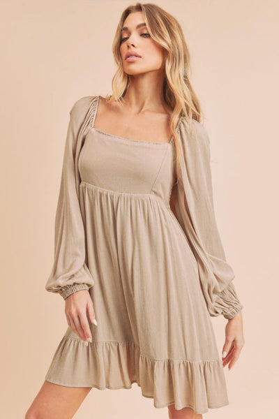 Aemi + Co Ruffled Hem Square Neck Balloon Sleeve Mini Dress