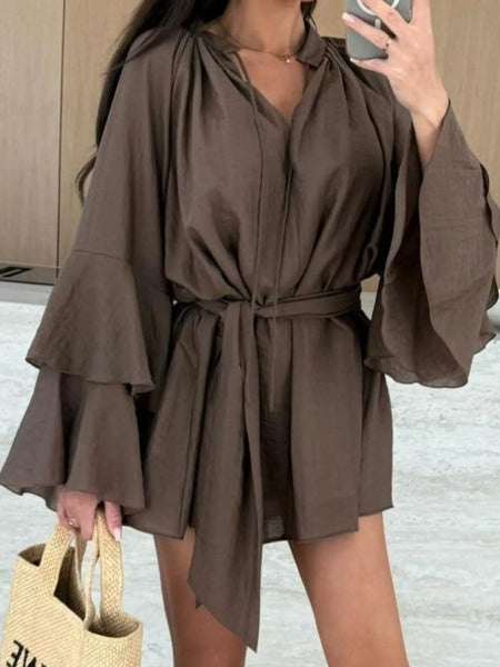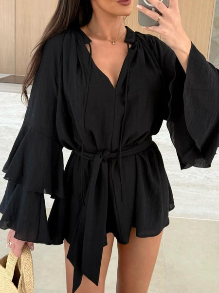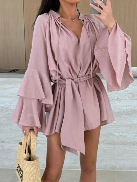 - Features:Tied,Tiered,Ruffled