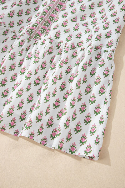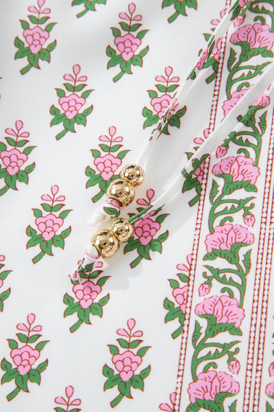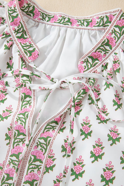 Floral Print Puff Sleeve Tie Neck Ruffled Hem Dress